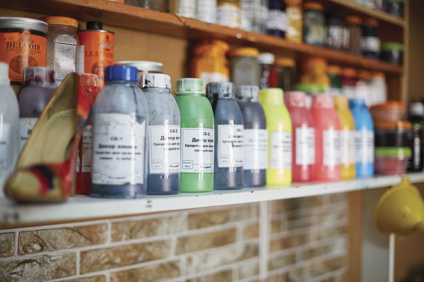 Другой клиент принес на покраску совершенно новую обувь, очень дорогую. Купил за границей белые туфли, а когда приехал домой, понял, что погорячился. Пришел к нам перекрашивать в черный цвет. Получилось идеально, потому что мы используем краски на водной основе, которые не создают корку, а впитываются в кожу, прокрашивают ее насквозь и не смываются. То есть даже если обувь со временем потрескается, то слой белой краски не вылезет.